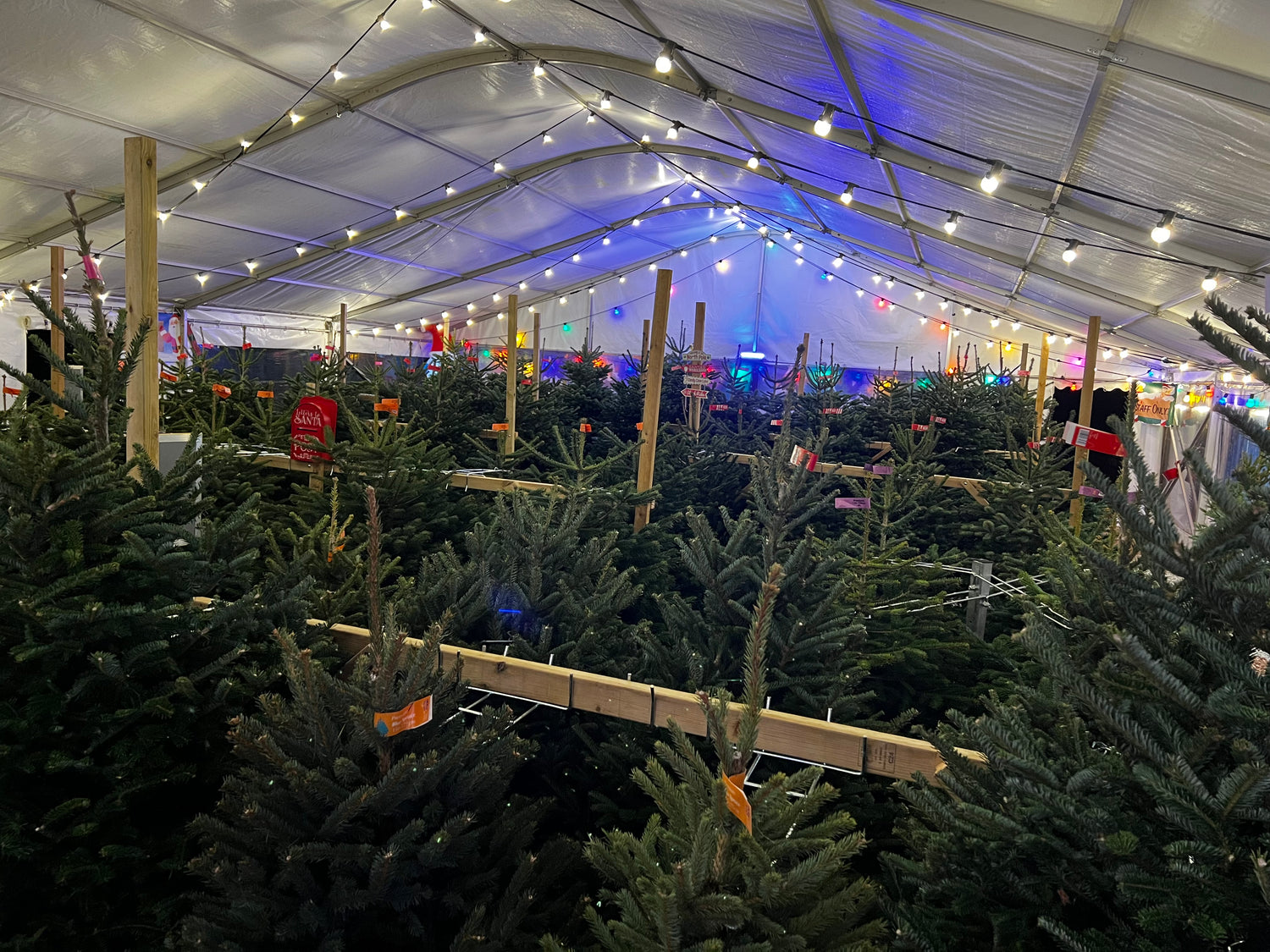 Stroll through our stunning display of cut & potted trees in all shapes and sizes under our festive marquee. We've got the perfect tree waiting for you, whatever the weather!